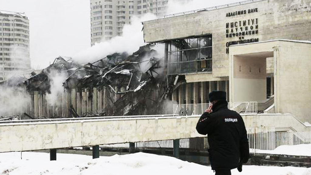 Напомним, масштабный пожар в библиотеке ИНИОН на Нахимовском проспекте произошел 30 января. Тушили его около суток. Огонь уничтожил от 15 до 20% фонда.