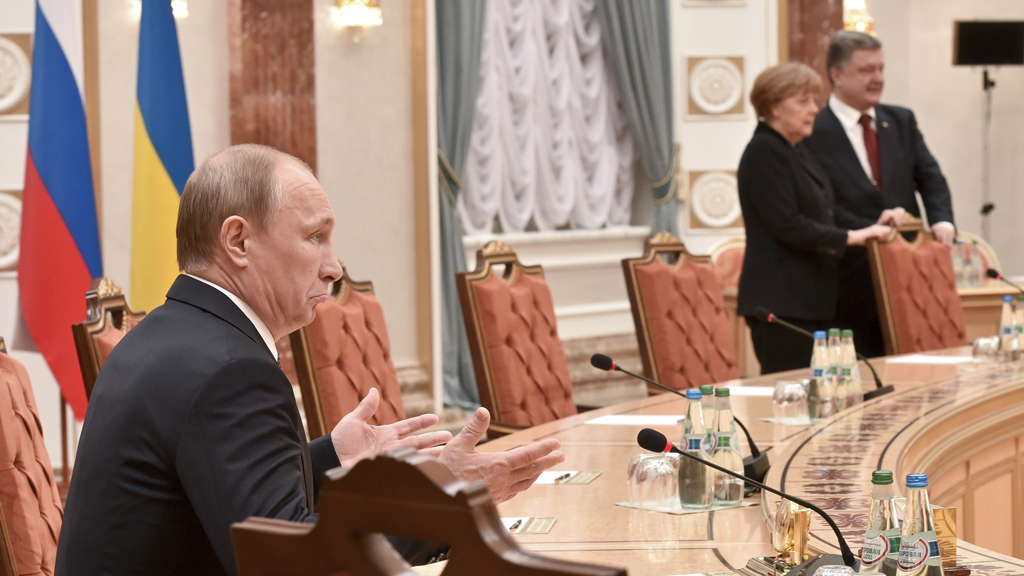 Переговоры «нормандской четверки» начались вечером в среду в минском Дворце независимости и до сих пор не закончились. Сначала Путин, Меркель, Олланд и Порошенко беседовали с глазу на глаз, часа через два к ним присоединились главы МИД. Через некоторое время встреча вновь продолжилась в узком составе.