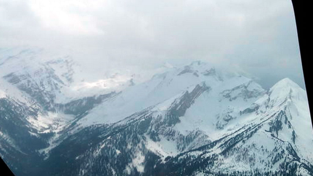 На фото видны верхушки французских Альп — лайнер разбился на высоте 2,7 тыс. метров над уровнем моря. Самолет направлялся из Барселоны в Дюссельдорф. За некоторое время до падения лайнер начал терять скорость и высоту. Известно, что данный самолет был самым старым в парке немецкого лоукостера Germanwings.