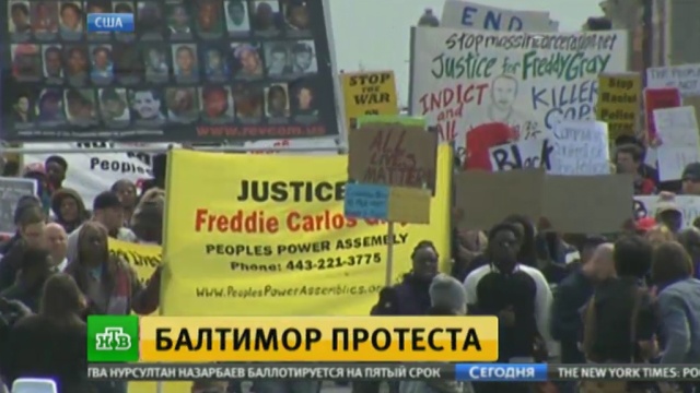 В Балтиморе не утихают митинги местных жителей, выступающих против произвола американской полиции. Почти каждый день люди выходят на улицы. На этот раз прошла самая массовая акция. В какой-то момент протестующие начали забрасывать полицейских камнями и бутылками и разбивать стекла у патрульных автомобилей. Несколько человек задержаны.