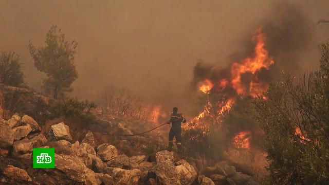 В Греции с новой силой вспыхнули природные пожары. Только за сутки обнаружили около сотни новых очагов. Если раньше горели острова, то теперь огонь бушует в 15 километрах от Афин.