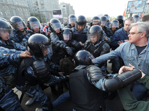 Участники «Марша миллионов» подрались с полицией на подступах к Болотной площади. Задержаны несколько десятков человек, в том числе Удальцов, Немцов и Навальный.