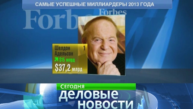 Журнал Forbes назвал самых успешных американских миллиардеров 2013 года. Список тех, кто в уходящем году заработал больше остальных, возглавил игровой магнат Шелдон Адельсон. Его состояние выросло на 15 миллиардов долларов и превысило 37 миллиардов. Бизнесмен владеет сетью казино и отелей в