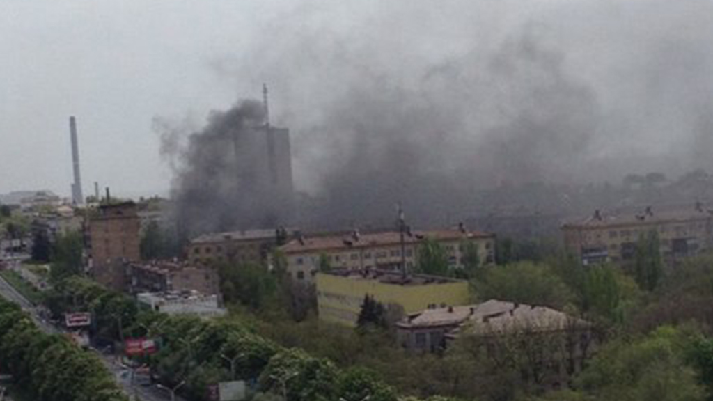 @alexzinovievich: «Мариуполь 9 мая Срочно возле УВД города идет бой…По неподтвержденной инф. нашу милицию которая отказалась… штурмует нацгвардия… Только что пролетели несколько авто с людьми в черной форме с окон торчат стволы в сторону УВД».