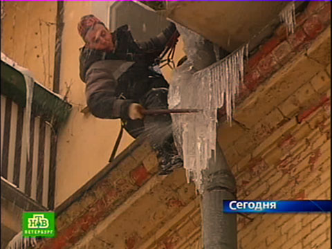 Лучше гор бывают только крыши. Особенно зимой и особенно после продолжительных снегопадов. В Петербурге наблюдается небывалый спрос на услуги альпинистов. Они борются с сосульками и снежными завалами на крышах.
