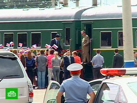Появилась первая съемка визита в Россию главы КНДР: на станции Бурея в Амурской области Ким Чен Ира приветствуют, как некогда в Советском Союзе встречали глав дружественных стран. Пока гостеприимные бурейцы машут флажками, с бронепоезда выгружают личный mercedes Кима, который он всюду возит с собой. На нем северокореец отправляется на знаменитую Бурейскую ГЭС, самую крупную на Дальнем Востоке.
