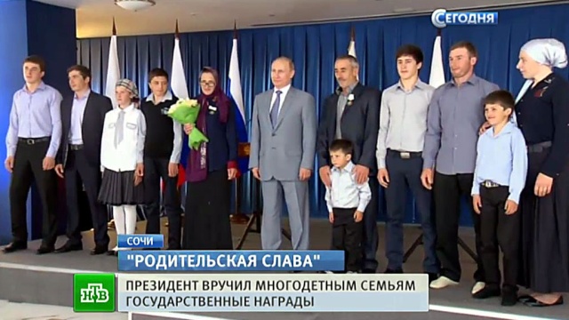 Сегодня на одном из олимпийских сочинских объектов «Адлер-арене» прошел спортивный фестиваль многодетных семей. Поддержать участников приехал Владимир Путин и по окончании турнира вручил родителям государственные награды.