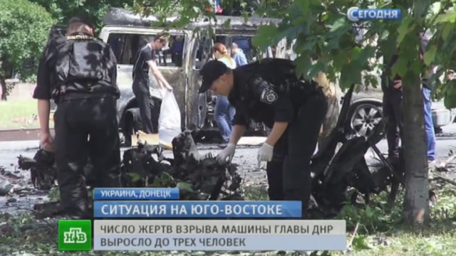 Тем временем на лидеров ДНР началась настоящая охота. Минувшей ночью мощный взрыв в центре Донецка разбудил едва ли не полгорода. У здания администрации был подорван микроавтобус, в котором обычно передвигался спикер верховного совета республики Денис Пушилин. Сам он находится в Москве, но в результате подрыва трое его охранников, среди которых был и личный телохранитель, получили многочисленные осколочные ранения.