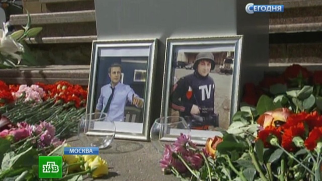 Телезрители спешат почтить память убитых на Украине корреспондентов. К зданию ВГТРК москвичи несут живые цветы и свечи. Корреспондент Игорь Корнелюк и звукорежиссер Антон Волошин погибли во время командировки в Луганск. В поселке Металлист, что недалеко от города, они вместе с оператором Виктором Денисовым попали под минометный обстрел.