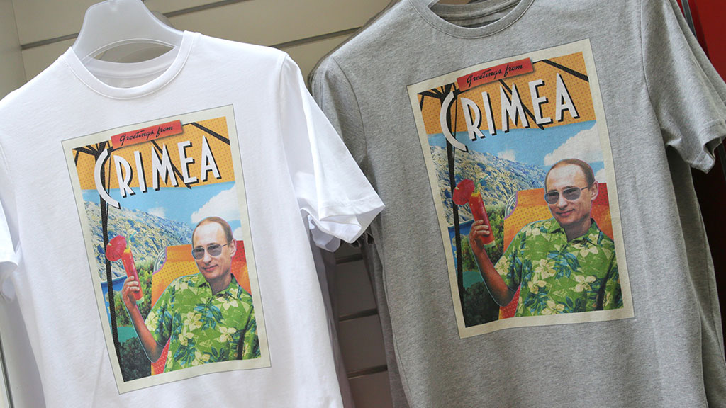 Главной особенностью этих футболок стало изображение Владимира Путина в разных видах — на коне, в военной форме или в темных очках.