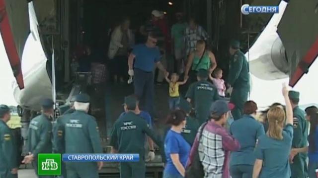Тем временем в Минеральных Водах приземлился самолет из Симферополя, откуда на Ставрополье перевезли более сотни человек. Это жители Луганска, Донецка, Славянска, в основном мамы с детьми, которые сначала из Донбасса решили уехать в Крым, а позже им предложили временно перебраться в другие регионы. С оставшимися родственниками на востоке Украины пока держат связь по телефону.