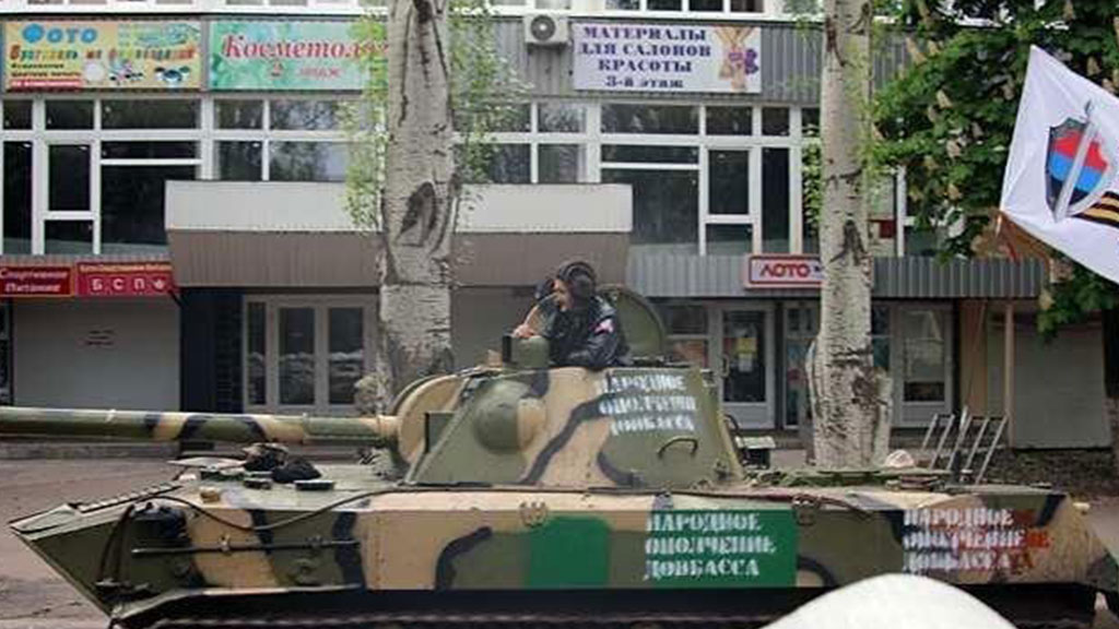 Колонна военной техники и машины с ополченцами прибыли в субботу из Славянска в Донецк, чтобы защитить жителей города от украинских силовиков.