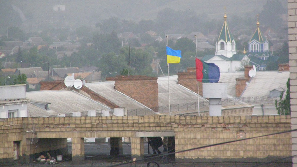 Министр обороны Украины отрапортовал Петру Порошенко о том, что над донецкими городами Артёмовск и Дружковка поднят украинский флаг.