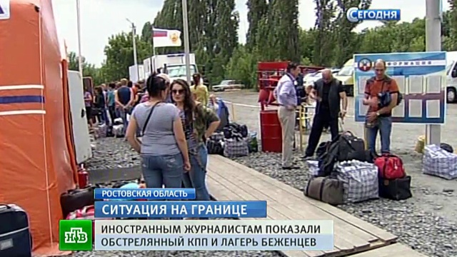 Сегодня с положением дел на российско-украинской границе смогли ознакомиться несколько десятков иностранных журналистов. Для них организовали поездку на российский пункт пропуска «Новошахтинск», который не раз обстреливали, как и беженцев.
