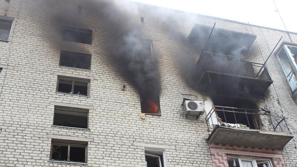 Константин Кнырик: «В результате обстрела из установки „Град“ Петровского района Донецка повреждено множество зданий, в том числе существенные повреждения получил в результате прямого попадания снаряда жилой дом и детский сад. В момент обстрела детей в нем не было».
