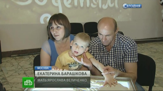 Шестилетний Ярослав Величенко сегодня пробует свои силы в сенд-арт , так называется искусство рисования песком. Для мальчика с поражением центральной нервной системы это прежде всего один из способов реабилитации.