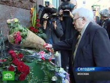 О том, что памятную доску установили только сегодня, свидетельствуют букеты цветов. Они обращают на себя внимание прохожих: корзина гвоздик от «Современника», розы — от МХАТа. Теперь узнать о том, что здесь