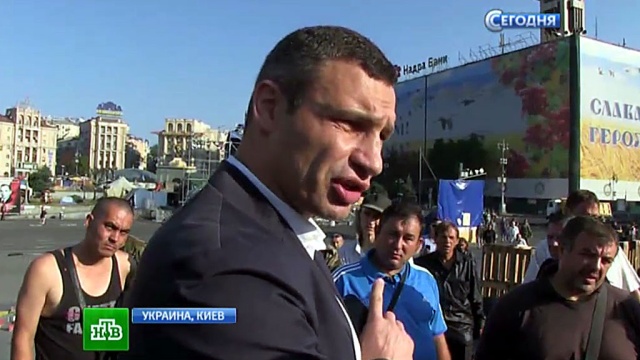 Виталий Кличко, мэр Киева: «Я пришел проверить, что тут происходит, потому что ночью группы людей подходили к Киевсовету, бросали коктейли Молотова. Я хочу сказать, если такое происходит, у нас есть информация, что тут на Майдане есть большое количество оружия. Много оружия было изъято».