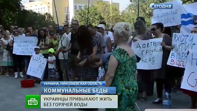 В Николаеве на акции протеста собралось 300 человек. Горожане возмущены: за горячую воду они заплатили вовремя, но ее все равно отключили. Осенью не будет и отопления, сообщили городские власти: заканчивается газ и заканчиваются деньги в бюджете.