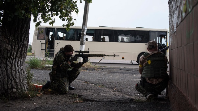Пока одни бойцы самообороны Донбасса готовятся к контрнаступлению, их товарищи занимающие бывшее здание СБУ в Донецке, попали под обстрел из снайперских винтовок.