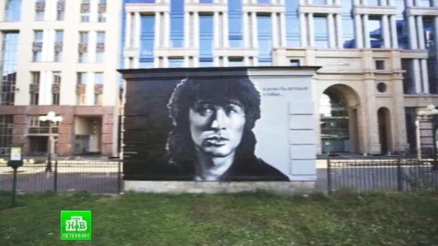 Масштабные граффити с изображением рок-музыканта появились в центре Петербурга.