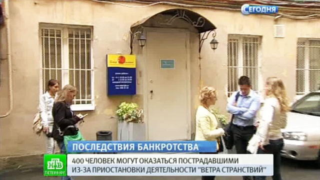 Как передает корреспондент НТВ Катерина Правдина, сколько точно пострадавших в результате приостановке деятельности «Ветра странствий» неизвестно. Пока сообщается, что за рубежом отдыхают 100 человек и еще 300 уже воспользовались услугами компании. Входят ли в эту цифру клиенты партнеров, представители которых сегодня тщетно пытались попасть в офис туроператора, тоже неясно.