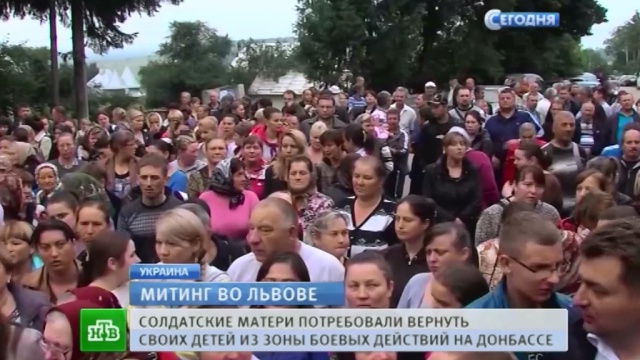 В центре и на западе Украины растет недовольство происходящим в Донбассе. Очередная крупная акция протеста прошла во Львове. Десятки женщин перекрыли одну из центральных улиц. Впрочем, требовали они не прекращения боевых действий, а возвращения домой своих сыновей и мужей, которые сейчас находятся на востоке Украины.