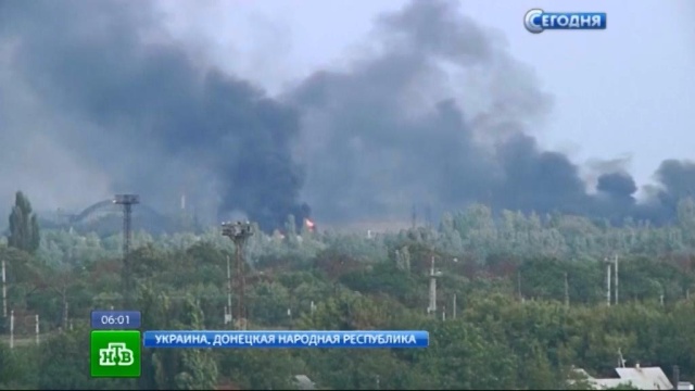 Над аэропортом Донецка все последние часы висит огромное зарево. В этом районе идет ночной бой.