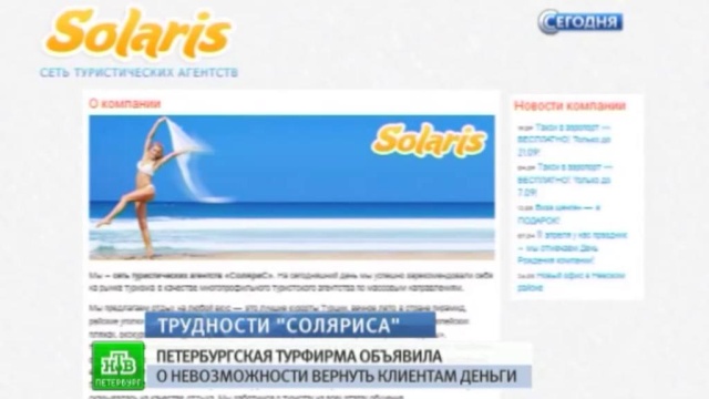 Компания объявила о невозможности в срок вернуть деньги клиентам, отказавшимся от путевок, сообщает «Фонтанка.ру». В турфирме эту ситуацию объяснили неправомерными действий контрагентов «Соляриса».