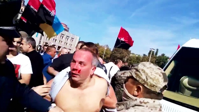 Позже депутаты все же захотели сделать короткое заявление для журналистов в здании обладминистрации, однако туда ворвались сторонники «Правого сектора» и атаковали Шуфрича и Скорика. Завязалась потасовка.