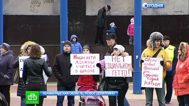 Жители Нового Девяткина, обеспокоенные нехваткой детских садов и школ, провели митинг.
