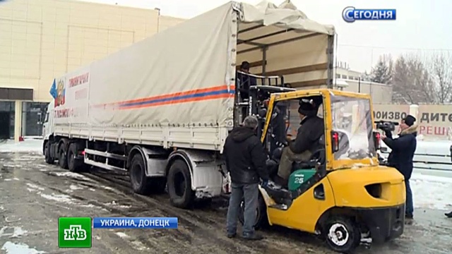 В Луганске и Донецке разгрузили машины с гуманитарной помощью. Очередная автоколонна МЧС доставила из России свыше 1200 тонн самого необходимого.