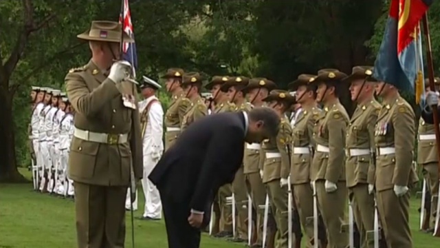 Президент Украины Пётр Порошенко удивил интернет-пользователей странным поступком. В Сети активно обсуждают видеозапись, на которой украинский лидер, находясь с визитом в Австралии, кланяется строю военных.