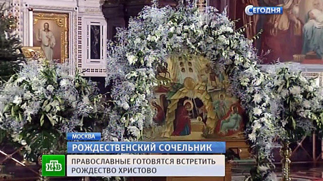 Сегодня у миллионов православных сочельник. Верующие готовятся встретить один из великих праздников Рождество Христово. Предстоящей ночью и завтра утром в храмах по всей России пройдут рождественские богослужения, главное из которых уже через несколько часов начнется в храме Христа Спасителя.