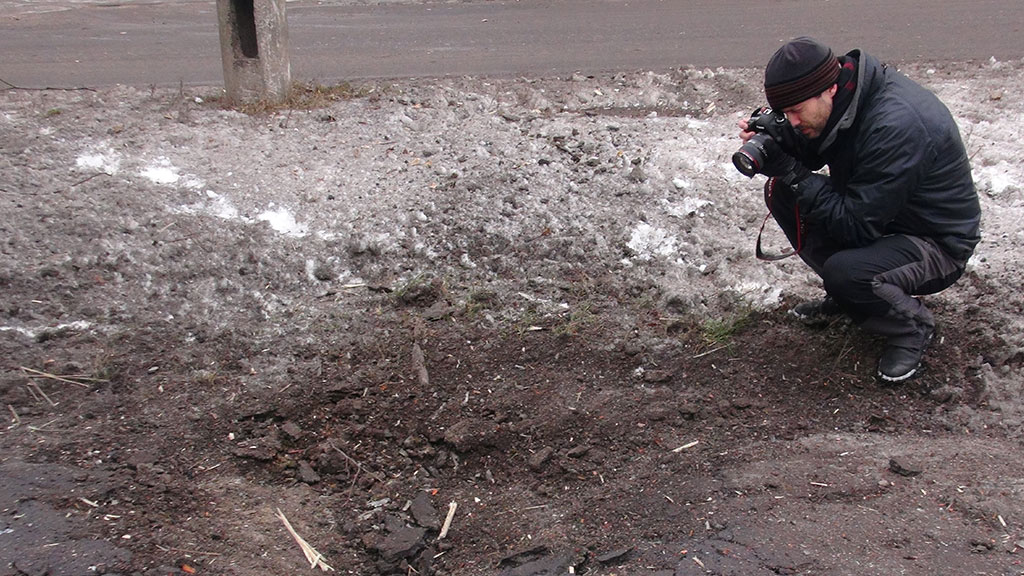 Сообщается, что обстрел произошел у автобусной остановки на Киевском проспекте в Донецке, где снарядом убило одного человека и шестерых ранило. Операторы и корреспонденты вынуждены искать укрытие, но, рискуя жизнью,