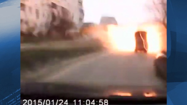 Субботний обстрел Мариуполя попал в объектив видеорегистратора в машине местного автолюбителя.