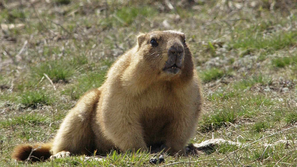 Откликаясь на призывы, сурок-метеоролог выбрался из своего домика и охотно общался с детьми, собравшимися в зоопарке отметить предстоящий День сурка.