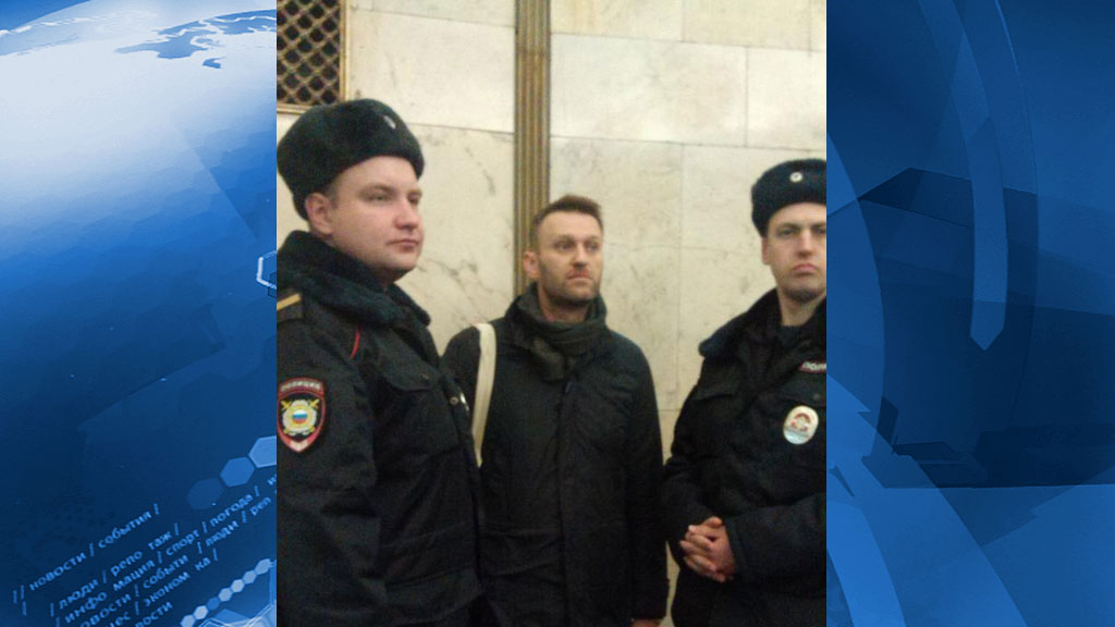 Алексея Навального задержали сотрудники полиции на одной из станций столичного метрополитена. Оппозиционер агитировал пассажиров подземки принять участие в антикризисном марше.