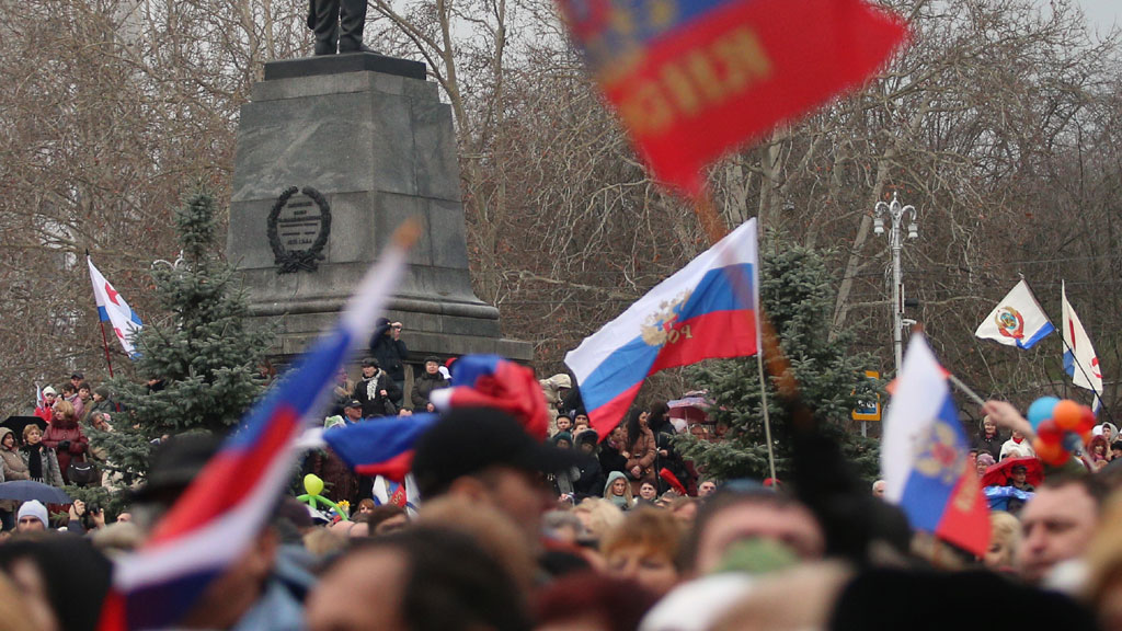 Жители Севастополя отметили День защитника Отечества и годовщину начала «крымской весны» десятитысячным митингом.