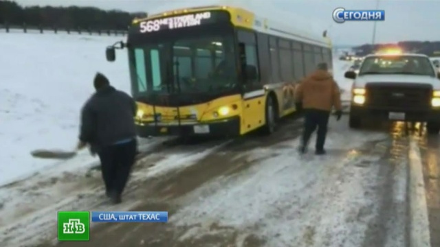 Работу одной из крупнейших воздушных гаваней США парализовал ледяной дождь. Он же серьезно осложнил дорожную обстановку. За последние сутки в Техасе произошло множество аварий. В частности, к западу от столицы штата на одном из шоссе столкнулись сразу четыре десятка машин. Полиция призывает людей воздержаться от поездок на личном транспорте.
