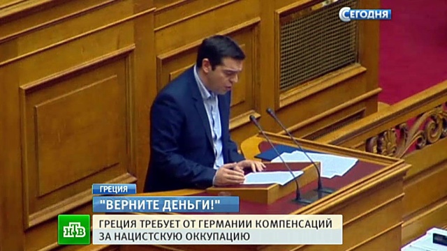 Как передает корреспондент НТВ Константин Гольденцвайг, эта тяга к справедливости новое правительство Греции охватила как нельзя своевременно: обнищавшей стране без новых кредитов не прожить и месяца. Брюссель пришедшим к власти левым деньги давать не спешит. И вот, когда госдолг Афин превысил 300 миллиардов евро, в правительстве вдруг напомнили: еще больше, до 330 миллиардов, грекам за преступления Второй мировой должны вернуть немцы.