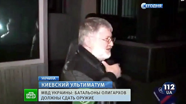 Как передает корреспондент НТВ Инна Осипова, приказ разоружаться глава МВД Украины отдал частным армиям местных олигархов после того, как Киев, по сути, стал превращаться в зону боевых действий. Что ни ночь, то новый захват с участием неопознанных вооруженных формирований. В первую очередь президент Порошенко распорядился разоружить бойцов, которые по приказу олигарха Коломойского накануне взяли в окружение офис «Укрнафта».