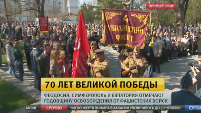 В Крыму сегодня тройной праздник. Кроме Феодосии, 71 год назад советские войска освободили столицу полуострова Симферополь и детскую здравницу Евпаторию. Празднование освобождения полуострова от фашистских захватчиков продлятся целый месяц и закончатся 9 мая на