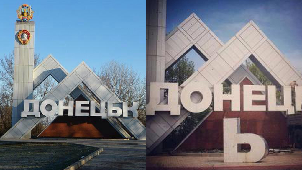 Со стелы ополченцы демонтировали букву «мягкий знак», которая была в украинском написании города. Таким образом надпись «Донецьк» превратилась в «Донецк». Защитники Донбасса также планируют в ближайшее время установить на стеле флаг и герб Новороссии.