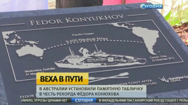 В Австралии установили памятную табличку в честь рекорда Фёдора Конюхова. В прошлом году он достиг города Мулулаба, после того как в одиночку, без посторонней помощи пересек Тихий океан. Путь на весельной лодке занял 160 дней.