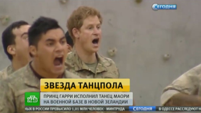 Во время командировки на главную военную базу в Новую Зеландию внук королевы Елизаветы решил исполнить боевой танец народа маори. Закрытая репетиция длилась всего 20 минут, затем Гарри вместе с другими военнослужащими вышел к публике.
