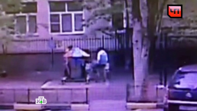 Инцидент произошел во дворе одной из многоэтажек на севере столицы. На записи с камеры видеонаблюдения видно, как к молодому человеку, сидящему на лавочке, подошли двое мужчин.