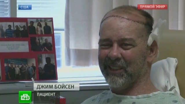 Джим Бойсен страдал от рака, после лучевой терапии у него на голове осталась большая рана. Помимо трансплантации черепной кости пациент получил новую поджелудочную железу и почку, эти органы тоже были поражены раком. Сейчас пациент чувствует себя хорошо и готов покинуть больницу.