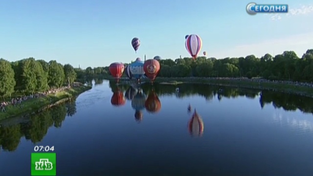 В Великих Луках 60 пилотов соревнуются за международный Кубок дружбы. Огромные шары традиционно взлетают из старой крепости. Под рев газовой горелки цветная материя наполняется воздухом, отрывается от земли и быстро набирает высоту.