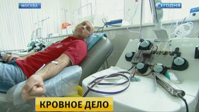 Если донор не идет на станцию переливания, то сама станция может приехать к донору. Как передает корреспондент НТВ Евгений Голованов, именно на выездных акциях прямо на производствах или в офисах собирается больше половины всей донорской крови в мире.